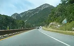 A small segment was also completed from the northern end of Franconia Notch to Littleton prior to 1984, with the final stretch from Littleton to the Vermont border completed by 1984. This left a gap through Franconia Notch, with traffic directed along US 3 between the two sections. For years, debates over how to minimize the environmental impact of the road through the notch (including on the Old Man of the Mountain, which would collapse in 2003) prevented it being built. As a compromise the Franconia Notch Parkway, a super-two roadway with a 45-mile-per-hour (72 km/h) speed limit, was completed in June 1988,[23][24] replacing US 3. Originally, this road was not included in I-93, as it had its own exit numbers and was signed "TO I-93", though, later, the parkway was officially added to the Interstate System despite the substandard conditions and the exits renumbered. The parkway opened in June 1988, replacing Route 3, and grade crossings were replaced by an overpass.