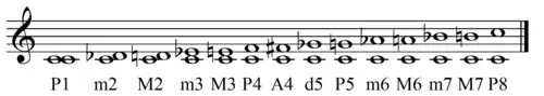 | 0 | Perfect unison | P1 | Diminished second | d2 | ⓘ | ||