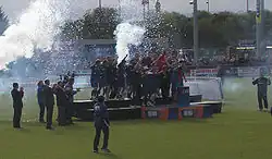 In late January 2001, following Inverness' Scottish Cup match against Ayr United, in which Caley Thistle overturned a 0–3 deficit to win 4–3, fans were asked to fill in a voting card on whether the club should change their name to reflect Inverness's recently granted city status. However, the name change was overwhelmingly rejected by the fans in attendance by 412 to 1,067, mostly on the grounds of the amount of success they had under the Inverness Caledonian Thistle name, namely it being just shy of a year since they had beaten Celtic in the Scottish Cup. The name Inverness City was registered by the club, seemingly in case of a change of heart within the voters, however it was soon dropped when Inverness CT won the Scottish First Division in 2004, and were promoted to the Scottish Premier League. With the name now free to use, in 2006 now defunct local amateur side Inverness City were born, and competed in the lower echelons of the Scottish Football Tier System, playing in the North Caledonian Football League and later the North Junior Superleague, before folding in 2019 due to lack of a home ground.