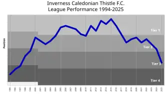 Inverness Caledonian Thistle won the Scottish Cup in 2015, were runners-up in 2023 and were also runners-up in the Scottish League Cup in 2014. They have also won the Scottish Challenge Cup three times and the Scottish Football League First Division twice. Its highest Premiership position is third in 2014–15.