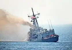 The IQAF generally played a major role in the war against Iran by striking airbases, military infrastructure, industrial infrastructure such as factories, powerplants and oil facilities, as well as systematically bombing urban areas in Tehran and other major Iranian cities (later came to be known as the War of the Cities). At the end of the war, in conjunction with the Army and special operations forces, the IQAF played a significant role in routing Iran's last military offensive.[3] (by that time, the role of the once superior Iranian Air Force had been reduced to missions in desperate situations only, performing critical tasks such as defending Iran's vital oil terminals). The air force also had a successful role attacking tankers and other vessels going to and from Iran, by using Exocet missiles on their Mirage F1s. On May 17, 1987, an Iraqi F1 mistakenly launched two Exocet anti-ship missiles into the American frigate USS Stark, crippling the vessel and killing 37 sailors.[3]
