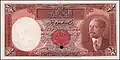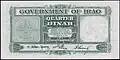 On 16 March 1932, banknotes were issued by the government in denominations of 1⁄4, 1⁄2, 1, 5, 10 and 100 dinars. The notes were printed in the United Kingdom by Bradbury, Wilkinson & Co.[27] From 1932 to 1947, the banknotes were issued by the Iraqi currency board for the government of Iraq and banknotes were convertible into pound sterling. From 1947, the banknotes were issued by the National Bank of Iraq, then after 1954 by the Central Bank of Iraq.