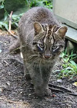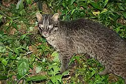 - ^ It is estimated that water birds comprise about 60% of the cat's diet with black rats being its secondary source of food at about 10–30% of its diet.[19] Based on stool samples, birds represent 60% of their diet, black rats 30%, insects 30%, lizards and frogs about 15–20%, bats 3–17%, and wild pig less than 1%. In addition, fish and crustaceans appear roughly 3–4% of the time.[23]