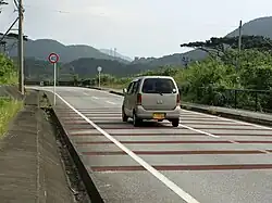 Since the US returned control of the Ryukyu Islands to Japan in 1972, development on Iriomote continued with finances from the Okinawan mainland. In 1977, a prefectural road was built that circles half of the island, which has led to a few Iriomote cat deaths every year due to traffic accidents.[12] The Ministry of the Environment as well as the governments of Okinawa and Taketomi Town began installing road signs to warn people of Iriomote cats crossing the road, tunnels beneath the road for their safe crossing, zebra zones which create loud noises when cars ride over them, wide ditches on the sides of roads, and ditches on the side of the road that are inclined on one side in order to improve the preservation of the cats.[14][49] However, many residents have objected to restrictions on land cultivation and improvement brought about by the measures in place to protect the Iriomote cat and other species on the island.[12]