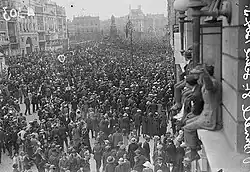 The Easter Rising of 1916 and its aftermath caused a profound shift in public opinion towards the republican cause in Ireland.[6] In the 1918 general election, the republican Sinn Féin party won a large majority of the Irish seats in the British parliament: 73 of the 105 constituencies returned Sinn Féin members (25 uncontested).[7] The elected Sinn Féin MPs, rather than take their seats at Westminster, set up their own assembly, known as Dáil Éireann (Assembly of Ireland). It affirmed the formation of an Irish Republic and passed a Declaration of Independence.[8] The subsequent War of Independence, fought between the Irish Republican Army (IRA) and British security forces, continued until July 1921 when a truce came into force. By this time the Parliament of Northern Ireland had opened, established under the Government of Ireland Act 1920, presenting the republican movement with a fait accompli and guaranteeing the British presence in Ireland.[9] In October negotiations opened in London between members of the British government and members of the Dáil, culminating in the signing of the Anglo-Irish Treaty on 6 December 1921.[10]
