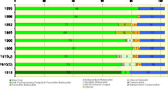 The IPP emerged from the 1885 general election holding the balance of power. The Liberals had won 335 seats, but the IPP's 86 seats were enough to keep the 249 Conservatives in power for the time being.[9]