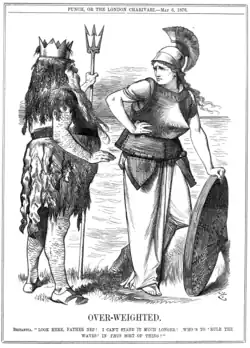 During the 1870s the distinction grew between 'first-class ironclads' or 'battleships' on the one hand, and 'cruising ironclads' designed for long-range work on the other. The demands on first-class ironclads for very heavy armor and armament meant increasing displacement, which reduced speed under sail; and the fashion for turrets and barbettes made a sailing rig increasingly inconvenient. HMS Inflexible, launched in 1876 but not commissioned until 1881, was the last British battleship to carry masts, and these were widely seen as a mistake. The start of the 1880s saw the end of sailing rig on ironclad battleships.[60]