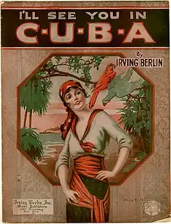 Biographer Charles Hamm writes that in Berlin's free time after hours, he taught himself to play the piano.[23] Never having had lessons, after the bar closed for the night, young Berlin would sit at a piano in the back and begin improvising tunes.[8] He published his first song, "Marie from Sunny Italy", written in collaboration with the Pelham's resident pianist Mike Nicholson,[13] in 1907, receiving 33 cents for the publishing rights.[6] The sheet music to the published song presented his name as "I. Berlin".[24]
