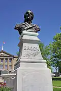 A small cairn near Queenston marks the spot where Brock is thought to have fallen.[66] In 1824, Brock's and Macdonell's remains were moved to a newly constructed monument atop Queenston Heights. Brock's Monument was bombed and heavily damaged in 1840. This action was reputedly by Irish-Canadian terrorist Benjamin Lett, however, a subsequent assize failed to confirm this.[67] The destroyed monument was replaced by a larger structure 185 feet (56 m) high, built at public expense, that still stands. Brock's and Macdonell's remains were reinterred inside the new monument on 13 October 1853. An inscription reads: