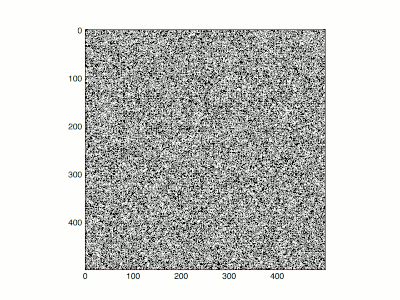 To do this, he compared the high-temperature and low-temperature limits. At infinite temperature (β = 0) all configurations have equal probability. Each spin is completely independent of any other, and if typical configurations at infinite temperature are plotted so that plus/minus are represented by black and white, they look like television snow. For high, but not infinite temperature, there are small correlations between neighboring positions, the snow tends to clump a little bit, but the screen stays randomly looking, and there is no net excess of black or white.