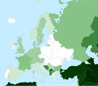 - ^ Jean-Paul Gourévitch, Les migrations en Europe p.362, Acropole, 2007, ISBN 978-2-7357-0267-1; see also Front National's estimate of 6 to 8 million Muslims quoted in Jonathan Laurence and Justin Vaïsse, Intégrer l'Islam, p.35 Archived 2016-04-26 at the Wayback Machine, Odile Jacob, 2007, ISBN 978-2-7381-1900-1