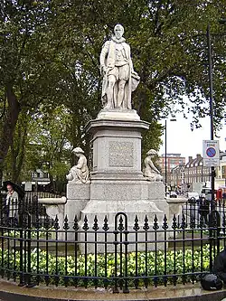 By the 17th century these traditional sources were inadequate to supply the growing population and plans were laid to construct a waterway, the New River, to bring fresh water from the source of the River Lea, in Hertfordshire to New River Head, below Islington in Finsbury. The river was opened on 29 September 1613 by Sir Hugh Myddelton, the constructor of the project. His statue still stands where Upper Street meets Essex Road. The course of the river ran to the east of Upper Street, and much of its course is now covered and forms a linear park through the area.[6]