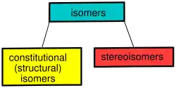 Isomers do not necessarily share similar chemical or physical properties. Two main forms of isomerism are structural (or constitutional) isomerism, in which bonds between the atoms differ; and stereoisomerism (or spatial isomerism), in which the bonds are the same but the relative positions of the atoms differ.