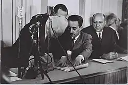 When Herzl Rosenblum, a journalist, was called up to sign, Ben-Gurion instructed him to sign under the name Herzl Vardi, his pen name, as he wanted more Hebrew names on the document. Although Rosenblum acquiesced to Ben-Gurion's request and legally changed his name to Vardi, he later admitted to regretting not signing as Rosenblum.[17] Several other signatories later Hebraised their names, including Meir Argov (Grabovsky), Peretz Bernstein (then Fritz Bernstein), Avraham Granot (Granovsky), Avraham Nissan (Katznelson), Moshe Kol (Kolodny), Yehuda Leib Maimon (Fishman), Golda Meir (Meyerson/Myerson), Pinchas Rosen (Felix Rosenblueth) and Moshe Sharett (Shertok). Other signatories added their own touches, including Saadia Kobashi who added the phrase "HaLevy", referring to the tribe of Levi.[22]