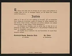 • Anti-Italian leaflet distributed by the Austro-Hungarian government, mocking Italy's entry in the war by describing it as the day "Italy died".