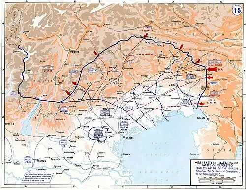 • Edmonds, J. E.; Davies, Sir Henry Rodolph (1949). Military Operations: Italy 1915–1919. History of the Great War based on Official Documents by Direction of the Committee of Imperial Defence. Maps in rear cover folder. London: HMSO. OCLC 4839237 – via Archive Foundation.