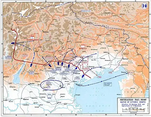 6. ^ c. 380.000 alone during Vittorio Veneto 24 October – 4 November 1918