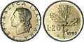 Coins still being minted for circulation at the time of the changeover to euro (in 2000 and 2001 only lire for collectors coins sets were minted) were:[17]