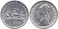 Coin production resumed slowly in 1946, reaching 1 million minted in 1948, with the purchasing power of the lira reduced to 2% of its value in 1939. Initially, 1 lira, 2, 5 and 10 L. coins were issued in aluminium. These coins were in circulation together with the AM-lire and some of the old, devalued coins of the Italian Kingdom. In 1951, the government replaced all circulating coins and notes with new smaller-sized aluminium 1 lira, 2, 5 and 10 L. (although the 2 L. coin was not minted in 1951 or 1952), and in 1954–1955, Acmonital (stainless steel) 50 and 100 L. coins were introduced, followed by aluminium-bronze 20 L. in 1957 and silver 500 L. in 1958. Increases in the silver bullion price led to the 500 L. coins being produced only in small numbers for collectors after 1967. The 500 L. (and later the 1,000 L.) also appeared in a number of commemorative coin issues, such as the centennial of Italian unification in 1961. Between 1967 and 1982, two types of "paper money" were issued with a value of 500 L.. These were not issued by "Banca d'Italia", but directly by the government bearing the title "Repubblica Italiana".