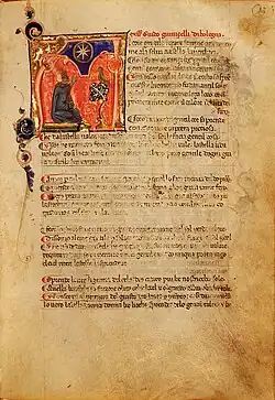 Italian prose of the 13th century was as abundant and varied as its poetry.[35] Halfway through the century, a certain Aldobrando or Aldobrandino wrote a book for Beatrice of Savoy, called Le Régime du corps. In 1267 Martino da Canale wrote a history of Venice in the same Old French (langue d'oïl). Rustichello da Pisa composed many chivalrous romances, derived from the Arthurian cycle, and subsequently wrote the Travels of Marco Polo, which may have been dictated by Polo himself.[36] And finally Brunetto Latini wrote his Tesoro in French.[30] Latini also wrote some works in Italian prose such as La rettorica, an adaptation from Cicero's De inventione, and translated three orations from Cicero. Another important writer was the Florentine judge Bono Giamboni, who translated Orosius's Historiae adversus paganos, Vegetius's Epitoma rei militaris, made a translation/adaptation of Cicero's De inventione mixed with the Rethorica ad Erennium, and a translation/adaptation of Innocent III's De miseria humane conditionis. He also wrote an allegorical novel called Libro de' Vizi e delle Virtudi. Andrea of Grosseto, in 1268, translated three Treaties of Albertanus of Brescia, from Latin to Tuscan.[37]