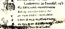 Perhaps the most important aspect of the Italian troubadour phenomenon was the production of chansonniers and the composition of vidas and razos.[9] Uc de Saint Circ undertook to author the entire razo corpus and a great many of the vidas. The most famous and influential Italian troubadour was Sordello.[10]