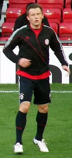 During his career, Olić played for German Bundesliga clubs such as Hamburger SV, VfL Wolfsburg and Bayern Munich; won the 2004–05 UEFA Cup with CSKA Moscow; and appeared over 100 times for the Croatia national team. Olić primarily played as a striker but could also operate as a winger. He has been described as a relentless pursuer of the ball and possessing "power and a decent bit of pace with him". Former Croatia manager Slaven Bilić described him as a typical "match-winner" and "king of important matches" due to his ability to score against big opponents at critical moments.[4] Named the Croatian Footballer of the Year in 2009 and 2010, Olić appeared with Bayern Munich in two UEFA Champions League finals, in 2010 and 2012.