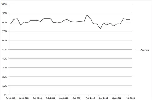 | 25 March 2010 | First month in office | 83[55] |