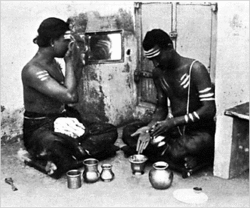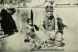 Iyers follow elaborate purification rituals, both of self and the house. Men are forbidden from performing their "sixteen duties" while women are forbidden from cooking food without having a purificatory bath in the morning.[41] Food is to be consumed only after making an offering to the deities.