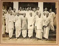 Since ancient times, Iyers, as members of the privileged priestly class, exercised a near-complete domination over educational, religious and literary institutions in the Tamil country.[64] Their domination continued throughout the British Raj as they used their knowledge of the English language and education to dominate politics, administration, the courts and intelligentsia. Upon India's independence in 1947, they tried to consolidate their hold on the administrative and judicial machinery. Such a situation led to resentment from the other castes in Tamil Nadu, the result of this atmosphere was a "non-Brahmin" movement and the formation of the Justice Party.[65] Periyar, who took over as Justice Party President in the 1940s, changed its name to Dravida Kazhagam, and formulated the view that Tamil Brahmins were Aryans as opposed to non-Brahmin Tamils who were Dravidian.[66] The ensuing anti-Brahminism and the rising unpopularity of the Rajaji Government left an indelible mark on the Tamil Brahmin community ending their political aspirations. In the 1960s the Dravida Munnetra Kazhagam (roughly translated as "Organisation for Progress of Dravidians") and its subgroups gained political ground on this platform forming state ministries, thereby wrenching control from the Indian National Congress, in which Iyers at that time were holding important party positions. Today, apart from a few exceptions, Iyers have virtually disappeared from the political arena.[67][68][69][70][71]