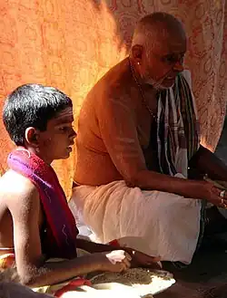 Iyer rituals comprise rites as described in Hindu scriptures such as Apastamba Sutra attributed to the Hindu sage Apastamba. The most important rites are the Shodasa Samaskāras or the 16 duties. Although many of the rites and rituals followed in antiquity are no longer practised, some have been retained.[28][29]
