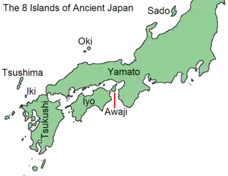 In the Shoki's main narrative, the couple first begets the following eight islands after performing the marriage ceremony (in the following order):