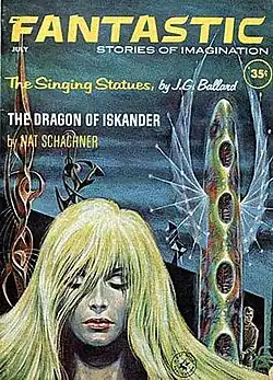 In 1955, Ballard left the RAF and returned to England,[23] where he met and married Helen Mary Matthews, who was a secretary at the Daily Express newspaper; the first of three Ballard children was born in 1956.[24] In December 1956, Ballard became a professional science-fiction writer with the publication of the short stories "Escapement" (in New Worlds magazine) and "Prima Belladonna" (in Science Fantasy magazine).[25] At the New Worlds magazine, the editor, Edward J. Carnell, greatly supported Ballard's science-fiction writing, and published most of his early stories.
