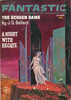 From 1958 onwards, Ballard was assistant editor of the scientific journal Chemistry and Industry.[26] His interest in art involved the emerging Pop Art movement, and, in the late 1950s, Ballard exhibited collages that represented his ideas for a new kind of novel. Moreover, his avant-garde inclinations discomfited writers of mainstream science fiction, whose artistic attitudes Ballard considered philistine. Briefly attending the 1957 World Science Fiction Convention in London, Ballard left disillusioned and demoralised by the type and quality of the science-fiction writing he encountered, and did not write another story for a year;[27] however, by 1965, he was editor of Ambit, an avante-garde magazine, which had an editorial remit amenable to his aesthetic ideals.[28][29]