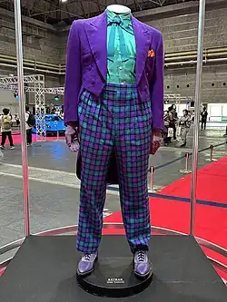 Nicholson continued to work prolifically in the 1980s, starring in such films as: The Postman Always Rings Twice (1981); Reds (1981), where Nicholson portrays the writer Eugene O'Neill with a quiet intensity; Prizzi's Honor (1985); Heartburn (1986); The Witches of Eastwick (1987); Broadcast News (1987); and Ironweed (1987). Three Oscar nominations also followed (Reds, Prizzi's Honor, and Ironweed).[52][53][54] John Huston, who directed Prizzi's Honor, said of Nicholson's acting, "He just illuminates the book. He impressed me in one scene after another; the movie is composed largely of first takes with him."[55] In the 1989 Batman movie, Nicholson played the psychotic villain, the Joker. The film was an international smash hit, and a lucrative deal earned him a percentage of the box office gross estimated at $60 million to $90 million.[56] Nicholson said that he was "particularly proud" of his performance as the Joker: "I considered it a piece of pop art", he said.[28]