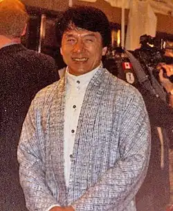 Chan was born on 7 April 1954 in British Hong Kong as Chan Kong-sang[1][2] to Charles and Lee-lee Chan, political refugees from the Chinese Civil War. In circa 1937, Chan's father, originally named Fang Daolong, briefly worked as a secret agent for Lieutenant General Dai Li, the chief spy in Kuomintang-ruled China.[19] For fear of being arrested by the communist government, Chan's father fled to British Hong Kong in the 1940s and changed his surname from Fang to Chan. Chan was his wife Chan Lee-lee's surname. Chan discovered his father's identity and changed his Chinese name to Fang Shilong (房仕龍) in the late 1990s, the name he would have been named according to his kin's genealogy book, which allegedly traces back to Tang dynasty statesman Fang Xuanling. Chan's ancestral roots are located in Wuhu, Anhui.[20][21][22][23]