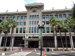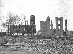 On May 3, 1901, downtown Jacksonville was ravaged by a fire that started as a kitchen fire. Spanish moss at a nearby mattress factory was quickly engulfed in flames and enabled the fire to spread rapidly. In a mere eight hours, it swept through 146 city blocks, destroyed over 2,000 buildings, left about 10,000 homeless and killed seven residents. The Confederate Monument in Hemming Park was one of the few landmarks to survive the fire. Governor William Sherman Jennings declared martial law and sent the state militia to maintain order; on May 17, municipal authority resumed.[43] It is said the glow from the flames could be seen in Savannah, Georgia, and the smoke plumes seen in Raleigh, North Carolina. Known as the "Great Fire of 1901", it was one of the worst disasters in Florida history and the largest urban fire in the southeastern United States. Architect Henry John Klutho was a primary figure in the reconstruction of the city.[44] The first multi-story structure built by Klutho was the Dyal-Upchurch Building in 1902.[45][46] The St. James Building, built on the previous site of the St. James Hotel that burned down, was built in 1912 as Klutho's crowning achievement.[47][48]
