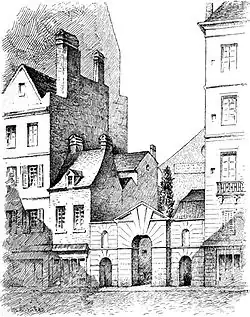 To accommodate growing membership, the group rented for its meetings the refectory of the Dominican monastery of the "Jacobins" in the Rue Saint-Honoré, adjacent to the seat of the Assembly.[25][26] They changed their name to Société des amis de la Constitution in late January, though by this time, their opponents had already concisely dubbed them "Jacobins", a nickname originally given to French Dominicans because their first house in Paris was in the Rue Saint-Jacques.[23][26]