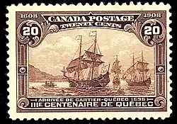 Jacques Cartier set sail for a second voyage on May 19 of the following year with three ships, 110 men, and his two Iroquoian captives. Reaching the St. Lawrence, he sailed upriver for the first time, and reached the Iroquoian capital of Stadacona, where Chief Donnacona ruled.[19] Cartier claimed a land near St. Lawrence River in 1534; but France paid little attention to the colony for 60 years. Not until King Henry IV sent Samuel de Champlain in 1608 to New France as its governor and built a permanent settlement and a fur-trading post called Quebec.[20]