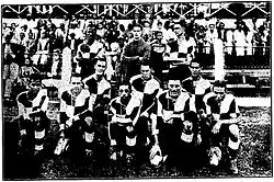 In 1893, Jamaica's first football club, the Kingston Cricket Club, was formed.[4] In 1910, the Jamaica Football Federation (JFF) was formed and controlled all of the games. The first game was played on 22 March 1925, as the opener in a three-game series against Haiti. Jamaica won the first game, 2 to 1, followed by victories of 3–0 and 1–0 in the other two.[5][4] In 1926, Jamaica hosted Haiti at Sabina Park and won 6–0.[4][6] At the 1930 Central American Games in Cuba, Jamaica made its first international tournament appearance and lost both games in its group.[7]