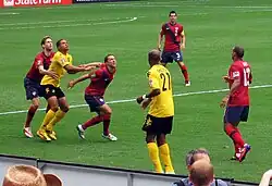Jamaica taking on the United States at the 2011 CONCACAF Gold Cup