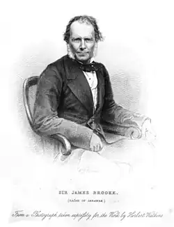 James Brooke KCB (29 April 1803[4] – 11 June 1868),[5] was a British soldier and adventurer who founded the Raj of Sarawak in Borneo. He ruled as the first White Rajah of Sarawak from 1841 until his death in 1868.