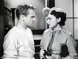 Cagney starred as Rocky Sullivan, a gangster fresh out of jail and looking for his former associate, played by Humphrey Bogart, who owes him money. While revisiting his old haunts, he runs into his old friend Jerry Connolly, played by O'Brien, who is now a priest concerned about the Dead End Kids' futures, particularly as they idolize Rocky. After a messy shootout, Sullivan is eventually captured by the police and sentenced to death in the electric chair. Connolly pleads with Rocky to "turn yellow" on his way to the chair so the Kids will lose their admiration for him, and hopefully avoid turning to crime. Sullivan refuses, but on his way to his execution, he breaks down and begs for his life. It is unclear whether this cowardice is real or just feigned for the Kids' benefit. Cagney himself refused to say, insisting he liked the ambiguity.[97] The film is regarded by many as one of Cagney's finest,[98] and garnered him an Academy Award for Best Actor nomination for 1938. He lost to Spencer Tracy in Boys Town. Cagney had been considered for the role, but lost out on it due to his typecasting.[99] (He also lost the role of Notre Dame football coach Knute Rockne in Knute Rockne, All American to his friend Pat O'Brien for the same reason.[99]) Cagney did, however, win that year's New York Film Critics Circle Award for Best Actor.