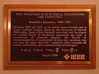 - ^ "1861: James Clerk Maxwell's greatest year". King's College London. 18 April 2011. Archived from the original on 22 June 2013. Retrieved 28 March 2013.