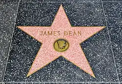 In 1960, Dean received a star on the Hollywood Walk of Fame.[120] In 1999, the American Film Institute ranked him the 18th best male movie star of Golden Age Hollywood in the AFI's 100 Years...100 Stars list.[121] All three of Dean's films have been preserved in the United States National Film Registry by the Library of Congress.[122] American teenagers of the mid-1950s, when Dean's major films were first released, identified with Dean and the roles he played, especially that of Jim Stark in Rebel Without a Cause. The film depicts the dilemma of a typical teenager of the time, who feels that no one, not even his peers, can understand him. Humphrey Bogart commented after Dean's death about his public image and legacy: "Dean died at just the right time. He left behind a legend. If he had lived, he'd never have been able to live up to his publicity."[123]