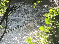 While not identified in the National Inventory of Dams, a very low head weir structure is found below Bosher Dam in Richmond on either side of Williams Island. Known as the "Z-Dam" for its zigzag course on the south side of the island, the current structure was built in 1932 and serves to direct water into Richmond's water treatment facility on the north bank. The less than 5 feet tall dam does not serve any power or navigation purpose.[14][15]