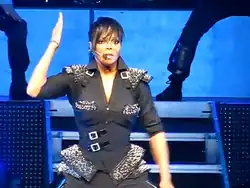 Jackson performing the album's title track, "Rhythm Nation", during her 2011 Number Ones, Up Close and Personal tour.