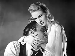 Leigh began 1949 with the thriller Act of Violence (1949) opposite Van Heflin and Robert Ryan, directed by Fred Zinnemann. Though a financial failure, it was well received by critics.[27] She also had a significant hit with MGM's version of Little Women, based on the novel by Louisa May Alcott, in which she portrayed Meg March, alongside June Allyson and Elizabeth Taylor.[28] The film was also generally praised by critics.[28] Then Leigh appeared as a nun in the anti-communist drama The Red Danube, which earned her critical acclaim,[29] followed by a role as Glenn Ford's love interest in The Doctor and the Girl.[30] Other credits from 1949 include the role of June Forsyte in That Forsyte Woman (1949), opposite Greer Garson and Errol Flynn, and as Robert Mitchum's leading co-star in the RKO-produced Holiday Affair (1949).[31]