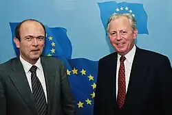 Janez Drnovšek (Slovene pronunciation: [ˈjàːnɛz dəɾˈnɔ́ːwʃək];[1][2] 17 May 1950 – 23 February 2008) was a Slovenian liberal politician, President of the Presidency of Yugoslavia (1989–1990), Prime Minister of Slovenia (1992–2002, with a short break in 2000) and President of Slovenia (2002–2007).