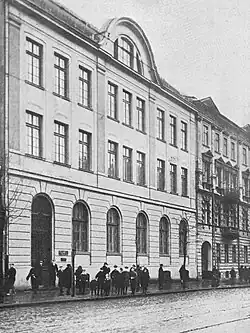 Korczak was born in Warsaw.[2] He was unsure of his birth date, which is attributed to his father's failure to promptly acquire a birth certificate for him; his birth date is 22 July of either 1878 or 1879.[3][4][a] His parents were Józef Goldszmit, a respected lawyer from a family of proponents of the haskalah, and Cecylia Gębicka, daughter of a prominent Kalisz family.[2][5] His father fell ill around 1890 and was admitted to a mental hospital, where he died six years later on 25 April 1896.[6][7] Spacious apartments were given up on Miodowa street, then Świętojerska street, Leszno street and others.[8] As his family's financial situation worsened, Henryk, while still attending the gymnasium (the current 8th Lycée in Warsaw), began to work as a tutor for other pupils.[2][8] In 1896 he debuted on the literary scene with a satirical text on raising children, Węzeł gordyjski (The Gordian Knot).[2][8]