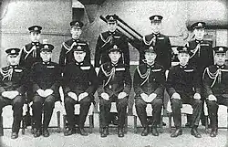 Following the engagement, Yamato and the remnants of Kurita's force returned to Brunei.[46] On 15 November 1944, the 1st Battleship Division was disbanded, and Yamato became the flagship of the Second Fleet.[22] On 21 November, while transiting the East China Sea in a withdrawal to Kure Naval Base,[47] Yamato's battle group was attacked by the submarine USS Sealion. The battleship Kongō and destroyer Urakaze were lost.[48] Yamato was immediately dry docked for repairs and anti-aircraft upgrades on reaching Kure, where several of the battleship's older anti-aircraft guns were replaced. On 25 November, Captain Aruga Kōsaku was named Yamato's commander.[22]